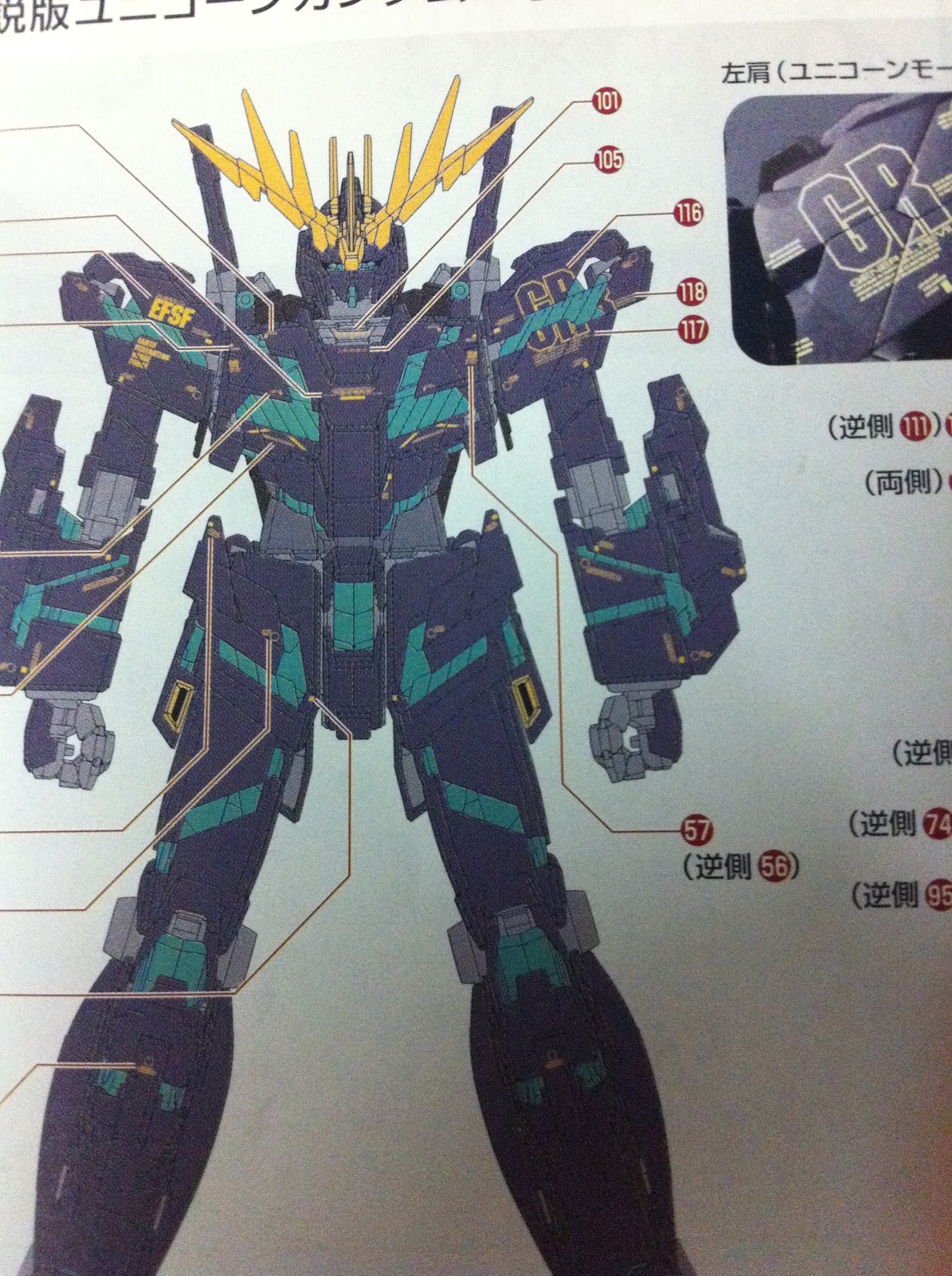 ■ Armed Armor BSA weapon only featured in the OVA version, it is equipped on the right arm. A Psycoframe-embedded long-range beam smart gun, it is capable of extremely accurate firing, Achieved by a special built-in sensor unit Transmitting spatial data to the pilot via psycommu system and using the pilot’s reaction to synchronize the beam-directing “fins “. The weapon can be used in Unicorn and Destroy Both modes