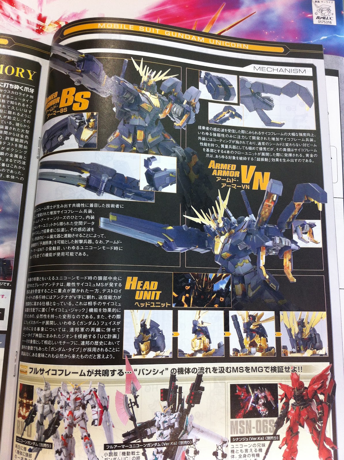 ■ Armed Armor VNA weapon featured only on the OVA version, it is fixed on the left arm. The Armed Armor is a VN-embedded Psycoframe destructive vise-like super-weapon That Utilized Effectively vibration to destroy mobile suits. In Destroy mode the weapon transforms into a shape similar to a beast’s claw. It is treated analysis with beam-resistant coating and can be used as a shield Also striking weapon or when in Unicorn mode.